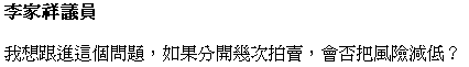 By several batches, you mean first the banks and then the utilities or what have you, or you could do it any number of ways. I favour getting it over with as quickly as possible. I don't know, you might want to talk, as you should, with investment bankers and get their opinions, but I would be careful. Remember, they are not necessarily always objective advisors. I personally favour, as long as it is open, what is called the "sunshine trade", all the cards on the table, everybody in the whole world knows what you are auctioning. The market will adjust immediately at that point and people will pay the price of it.