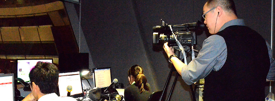 经注册的电视台/电台的工作人员在电视/电台室摄录立法会会议的过程。