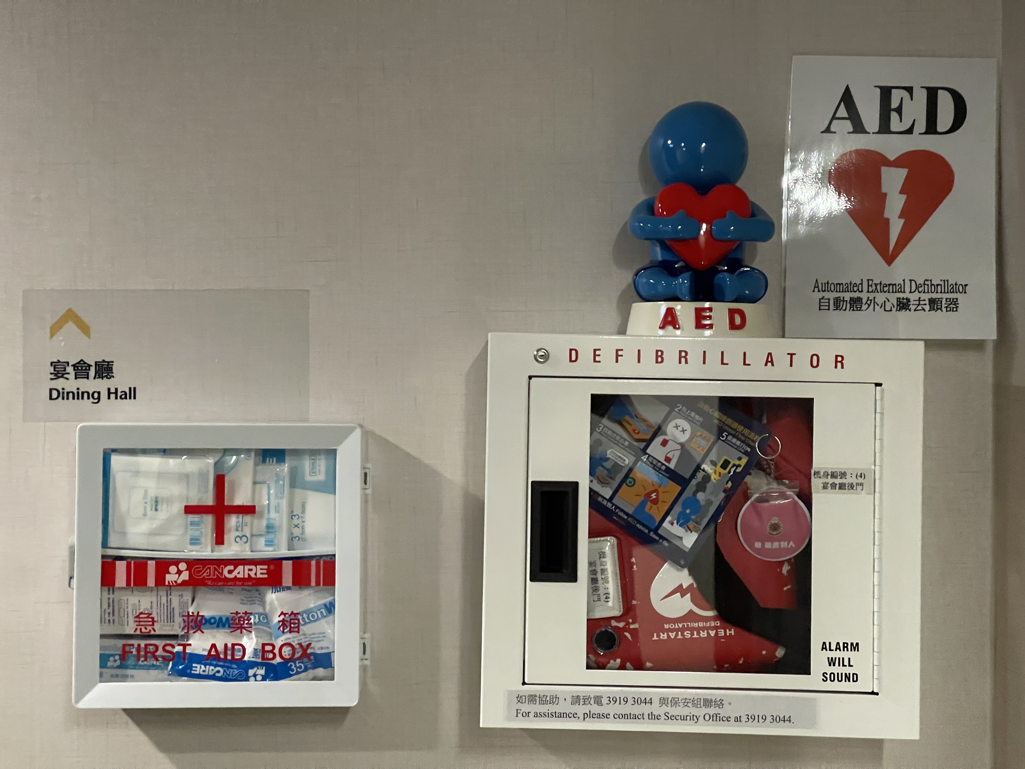 Automated External Defibrillators (AEDs) and first aid boxes are provided in the LegCo Complex in case of emergency.