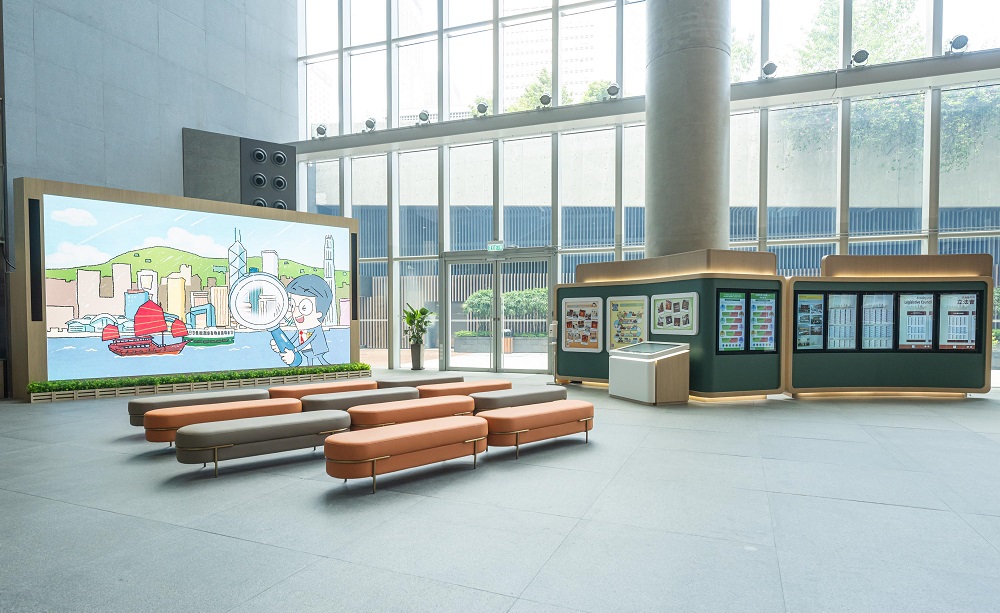 The Video Corner is located at the Main Lobby of the Complex and visitors' first stop. Low benches are placed next to the glass curtain walls of the Lobby to create a comfortable environment for visitors to watch a series of videos featuring various aspects of the work of LegCo.