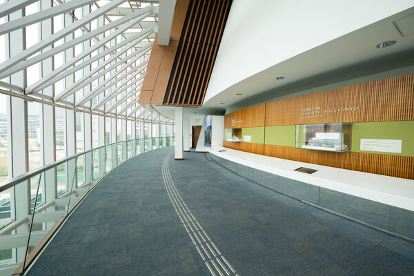 Two Education Galleries are built on the 3/F of the Complex to allow guided tour participants to have an overlook of the Chamber. Partitioned by glass panels, participants can observe the proceedings of Council meetings and even hold discussions in the Education Galleries without interrupting the meetings underway in the Chamber.