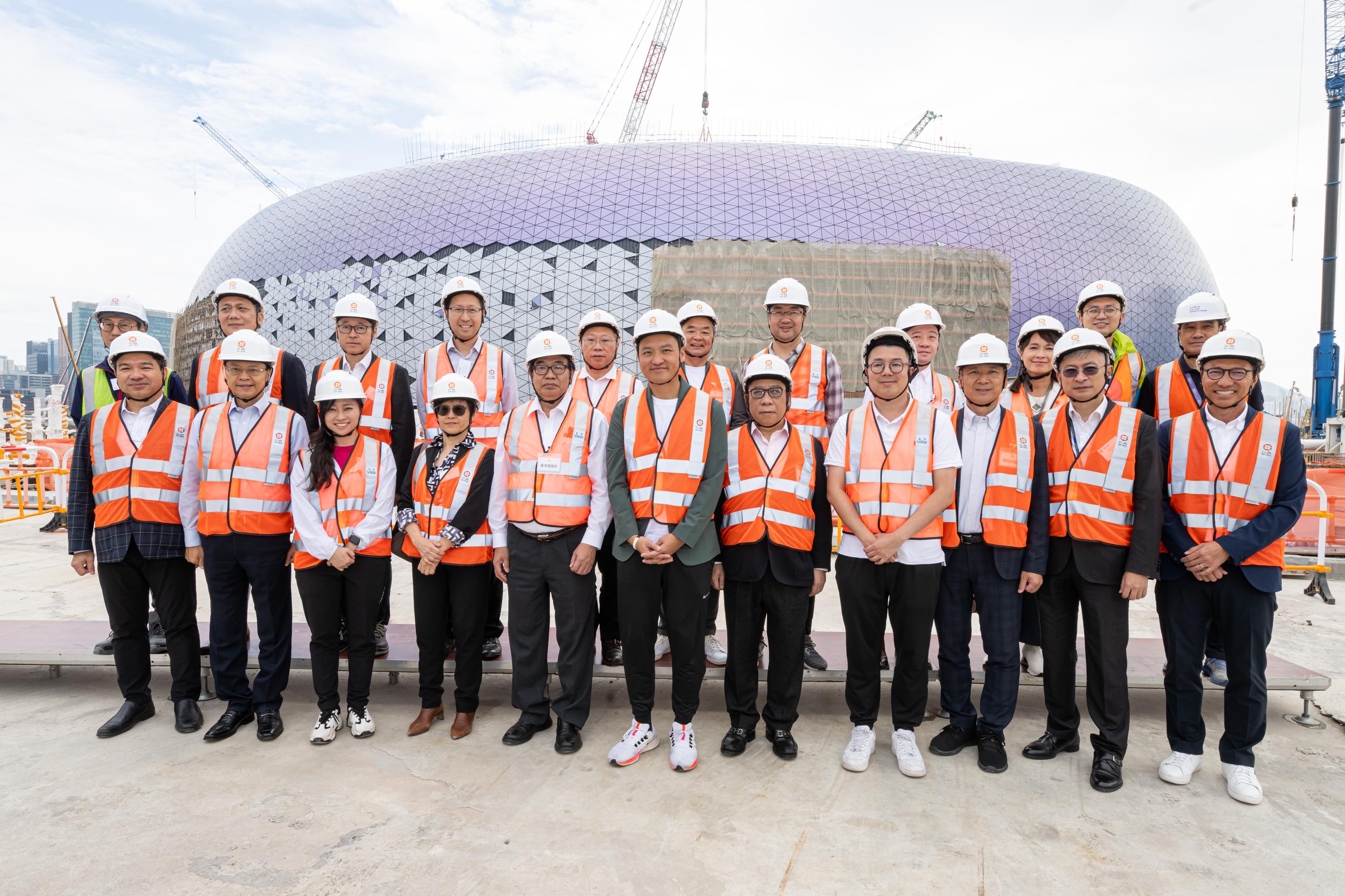 Legislative Council Members, accompanied by Mr Raistlin LAU Chun (second from right in front row), Under Secretary for Culture, Sports and Tourism, and Mr Sam WONG Tak-sum (first from right in front row), Commissioner for Sports, visit the construction site of Kai Tak Sports Park (“KTSP”)