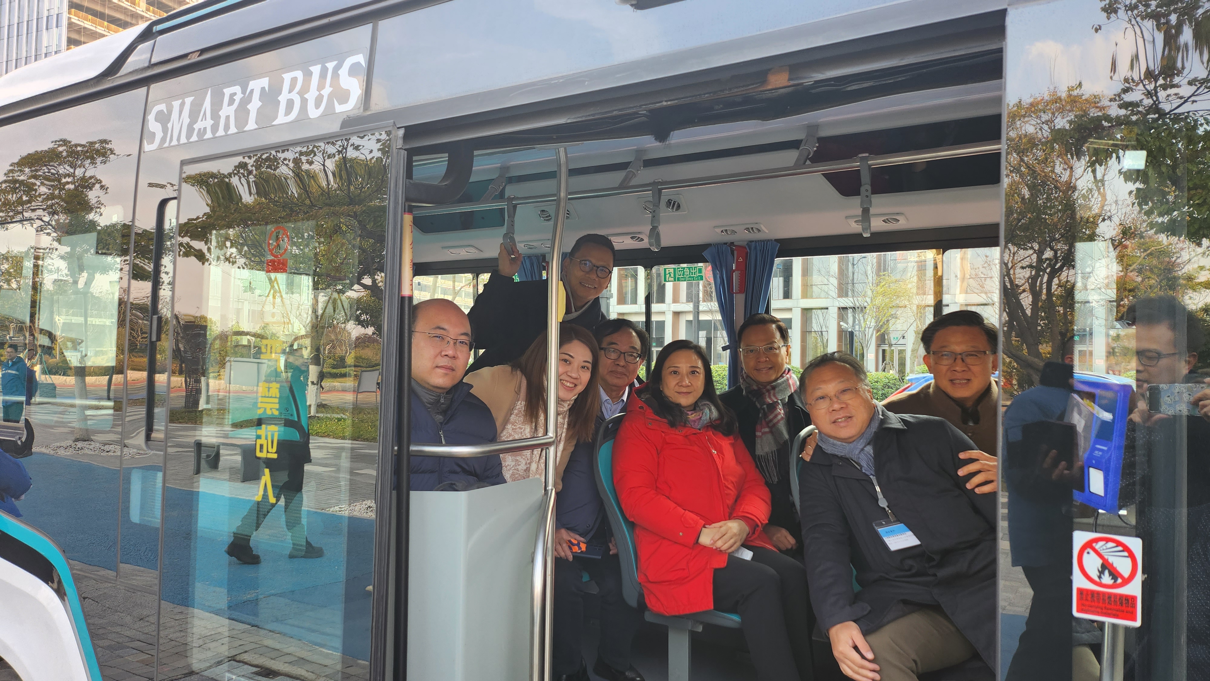 Legislative Council Members learn about the environmental friendliness of the hydrogen bus