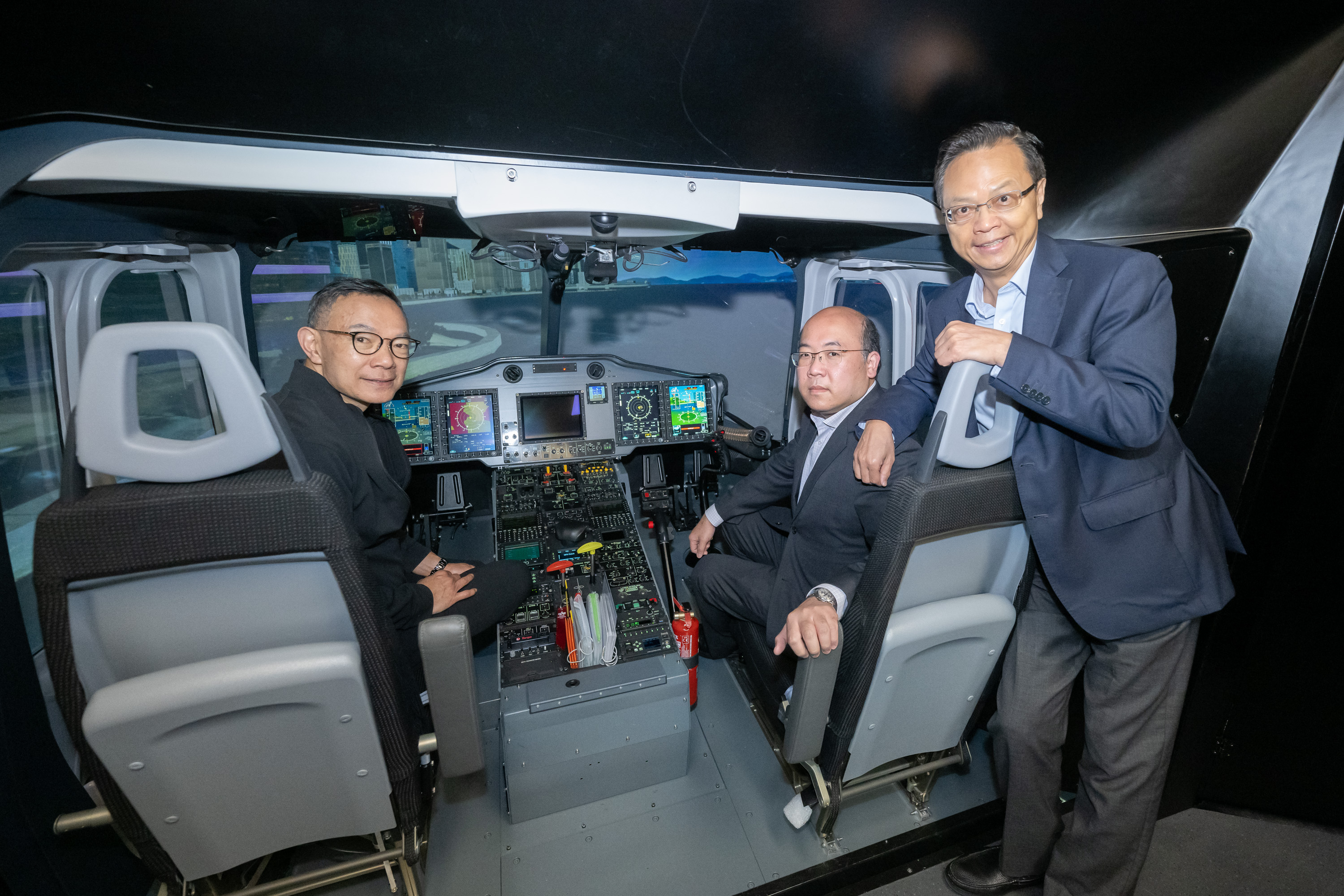Legislative Council Members experience firsthand the high-fidelity flying conditions in the helicopter flight simulator