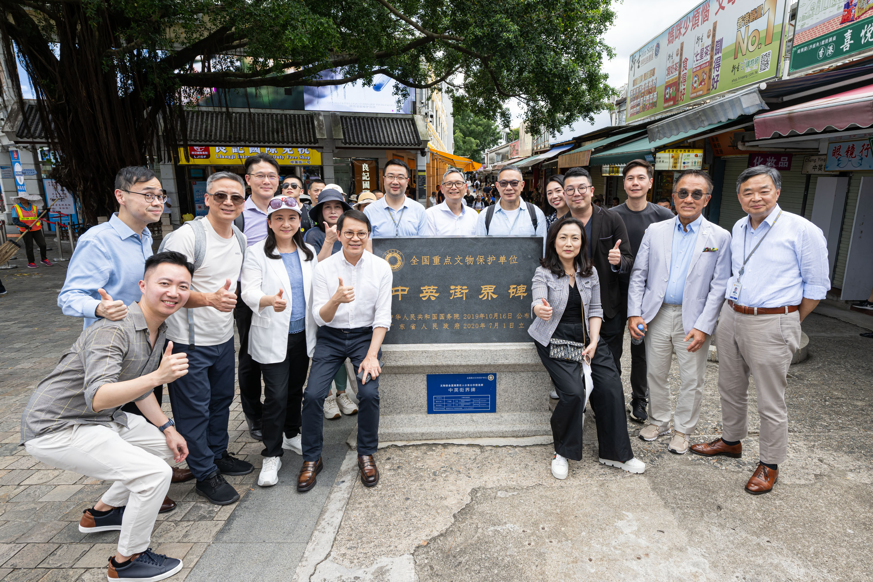 Legislative Council Members pose for a group photo with Mr Michael CHEUK Hau-yip (centre), Under Secretary for Security, at the Anglo-Chinese boundary stone in Chung Ying Street
