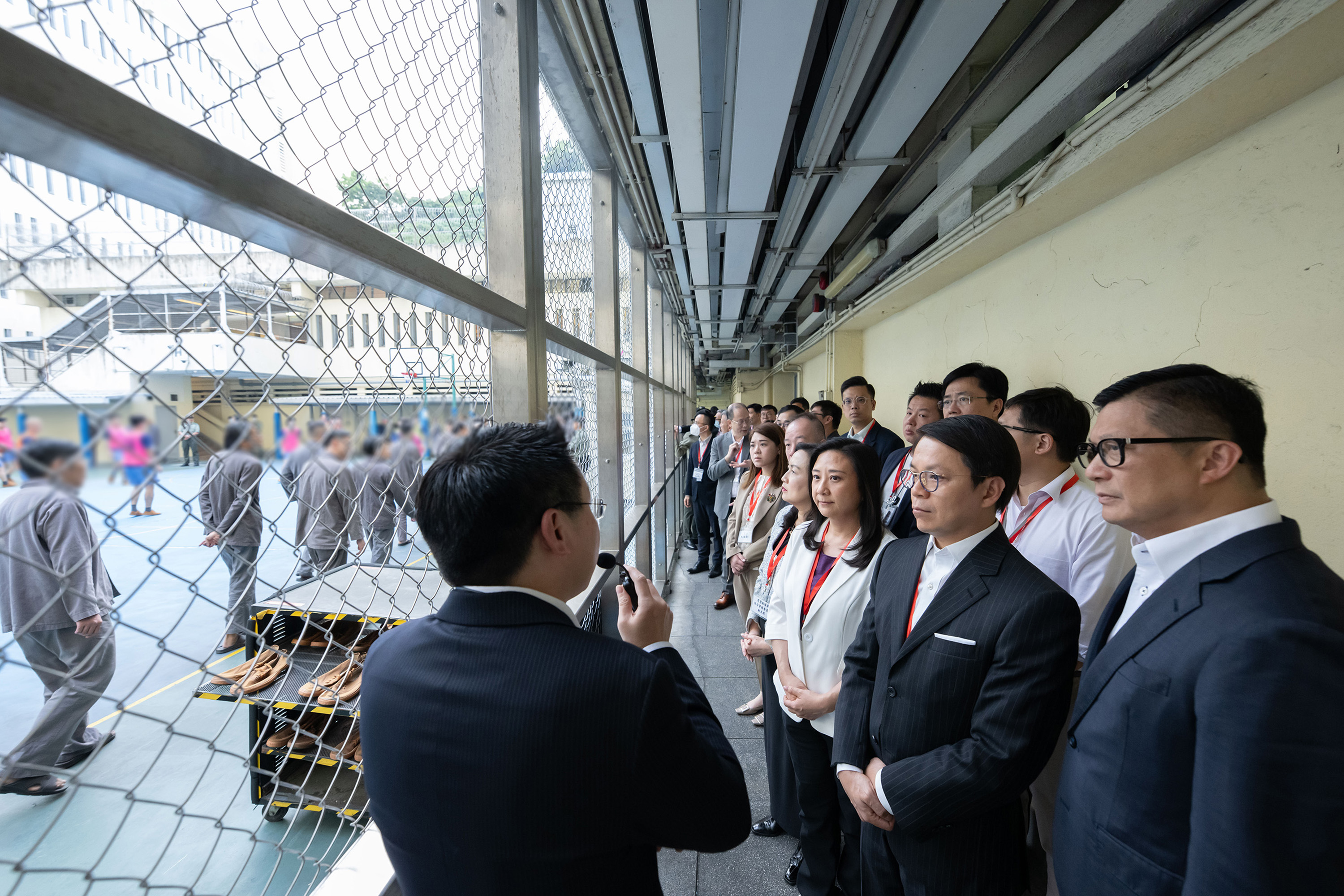 Legislative Council Members watch a Chinese-style foot drill training by young people in custody in Sha Tsui Correctional Institution