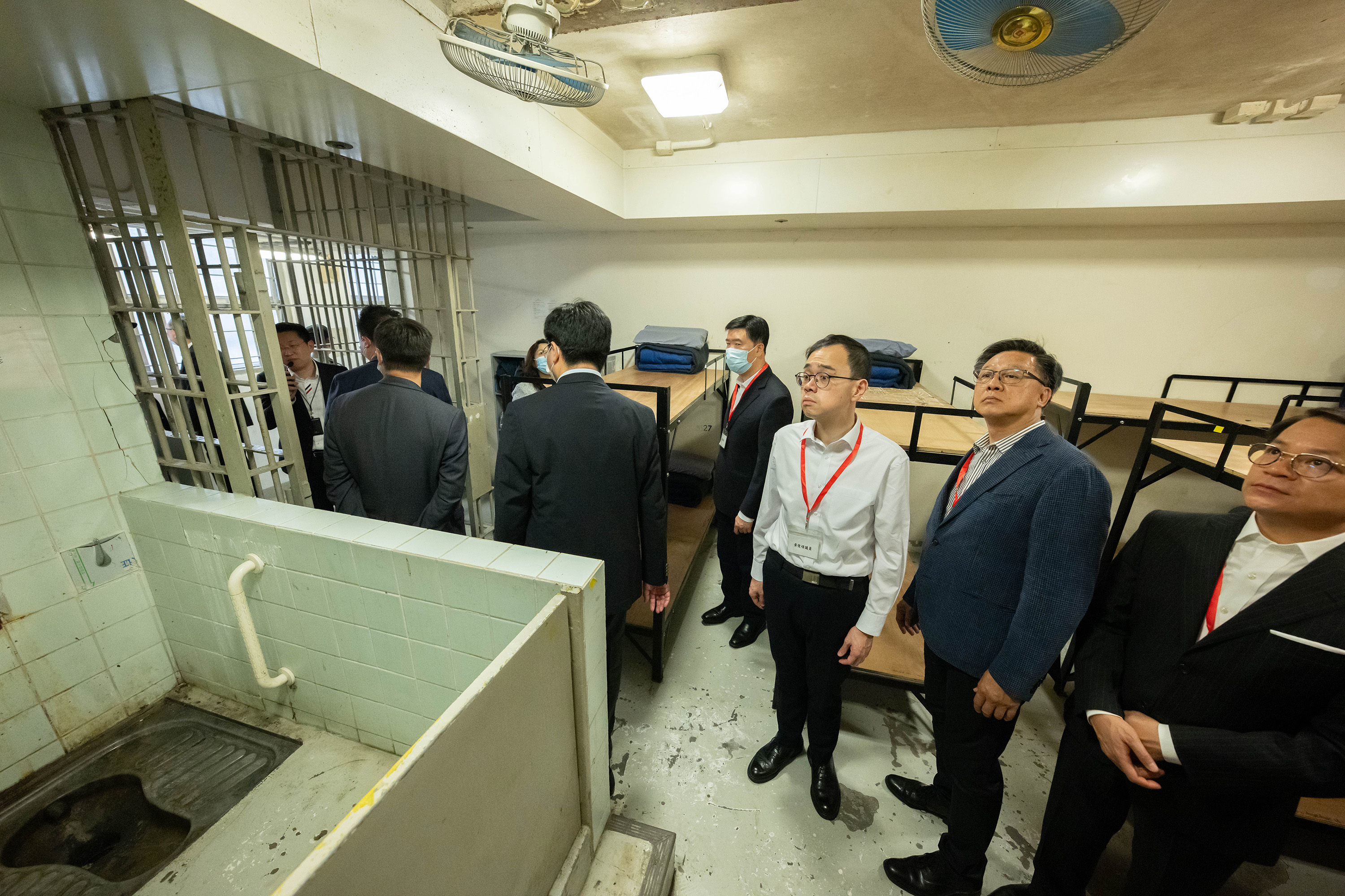 Legislative Council Members, accompanied by Mr TANG Ping-keung (first from right), Secretary for Security, are briefed on the current situation and redevelopment of Lai Chi Kok Reception Centre (“LCKRC”)