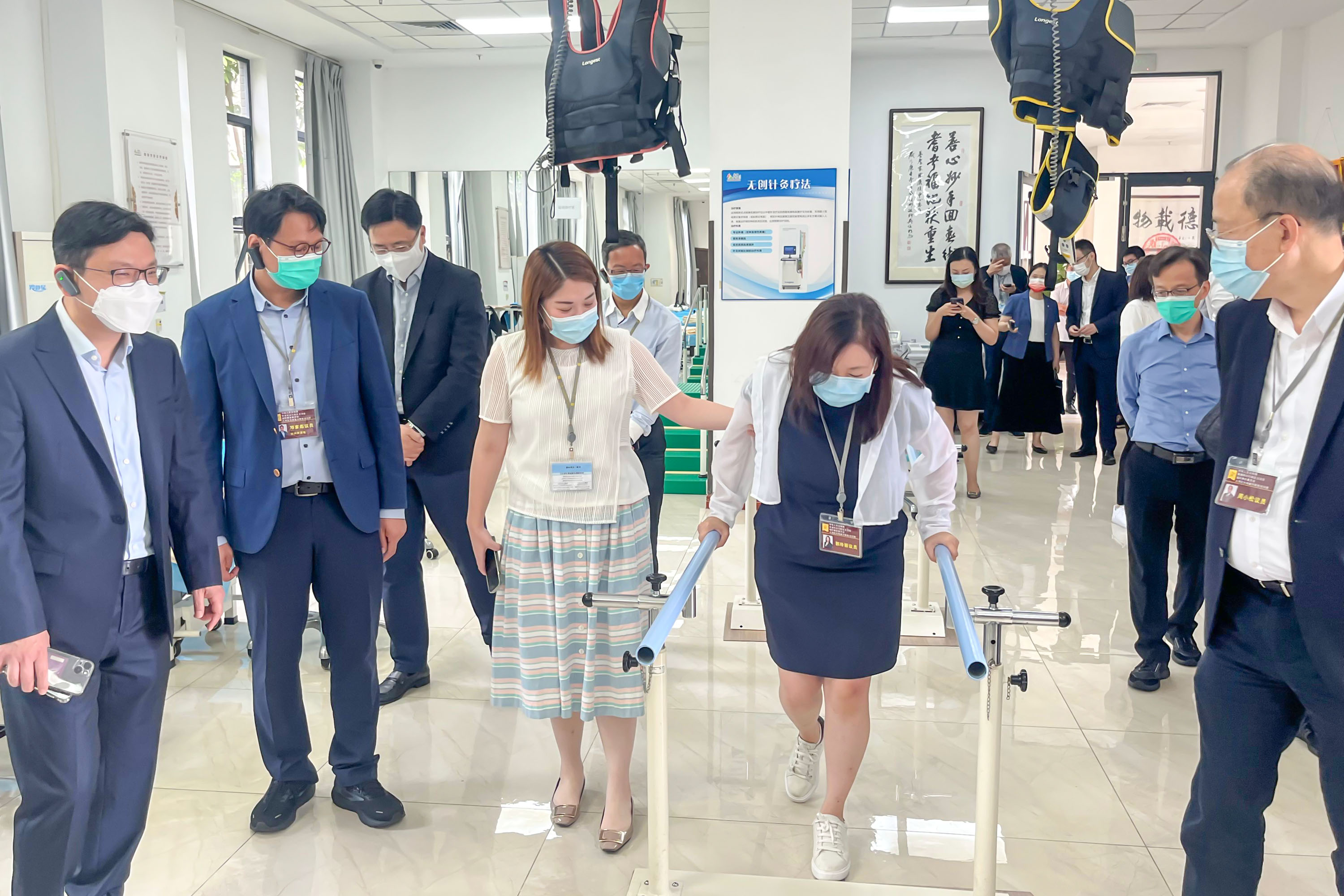 Delegation members visit Shanqi Nursing Home at Foshan and try out its rehabilitation facilities