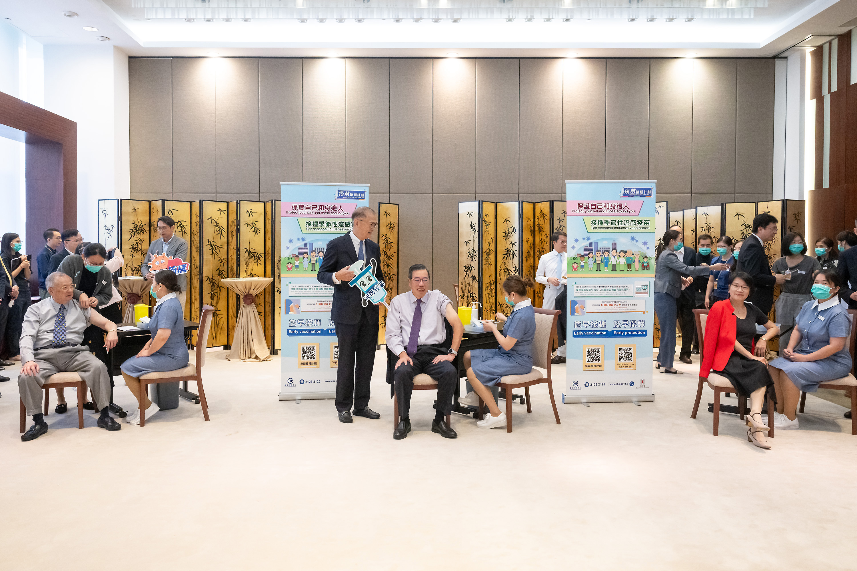 In response to the Government’s call for members of the public to get vaccinated early for protection against seasonal influenza, the Department of Health sent an outreach team to the Legislative Council Complex in October 2023 to administer flu vaccines to Members. About 50 Members participated in the event and were vaccinated on the spot. The Secretary for Health and his team came to show their support, with the aim of encouraging members of the public to get vaccinated as soon as possible.