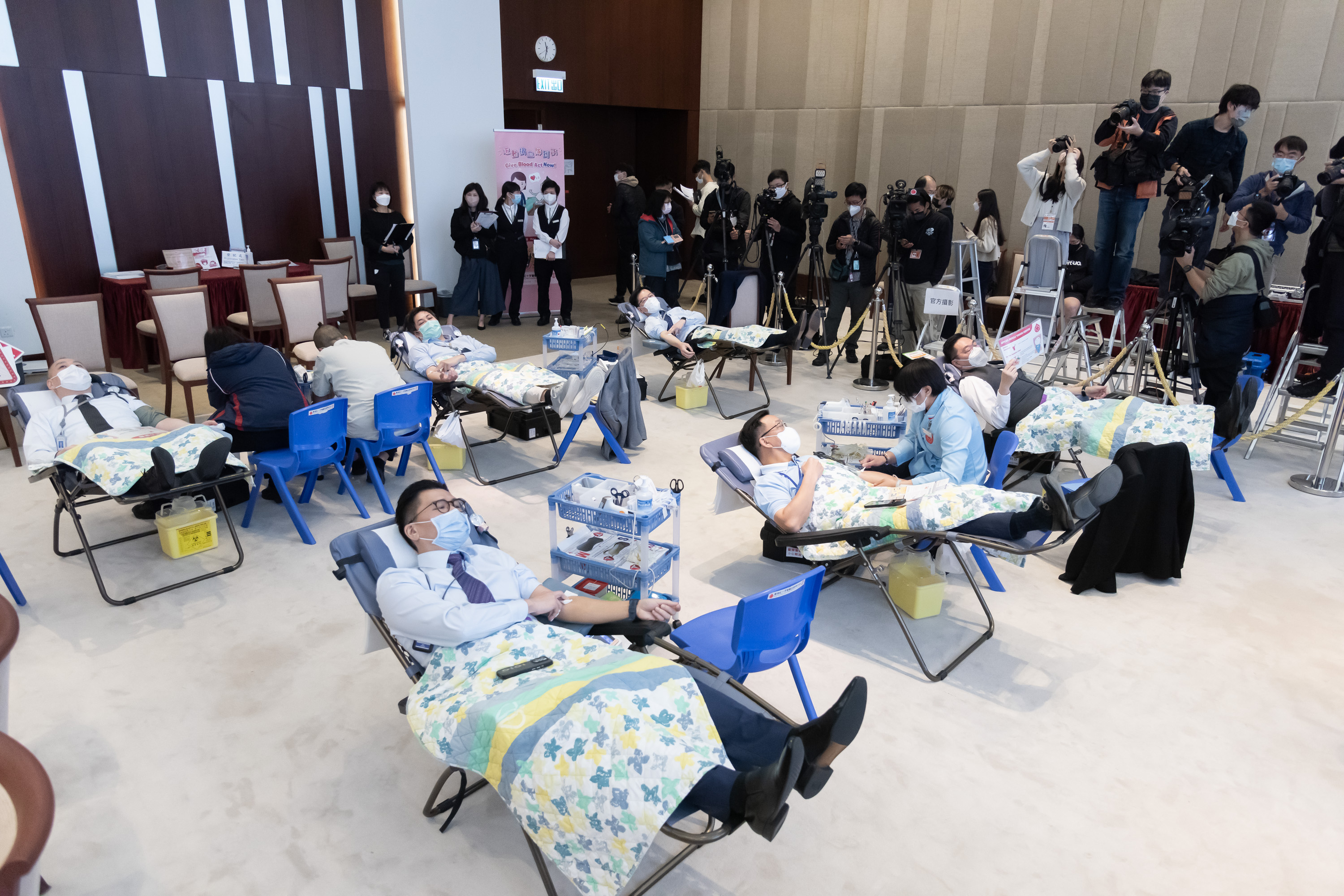 Legislative Council Members donate blood at the temporary station set up at the Legislative Council Complex