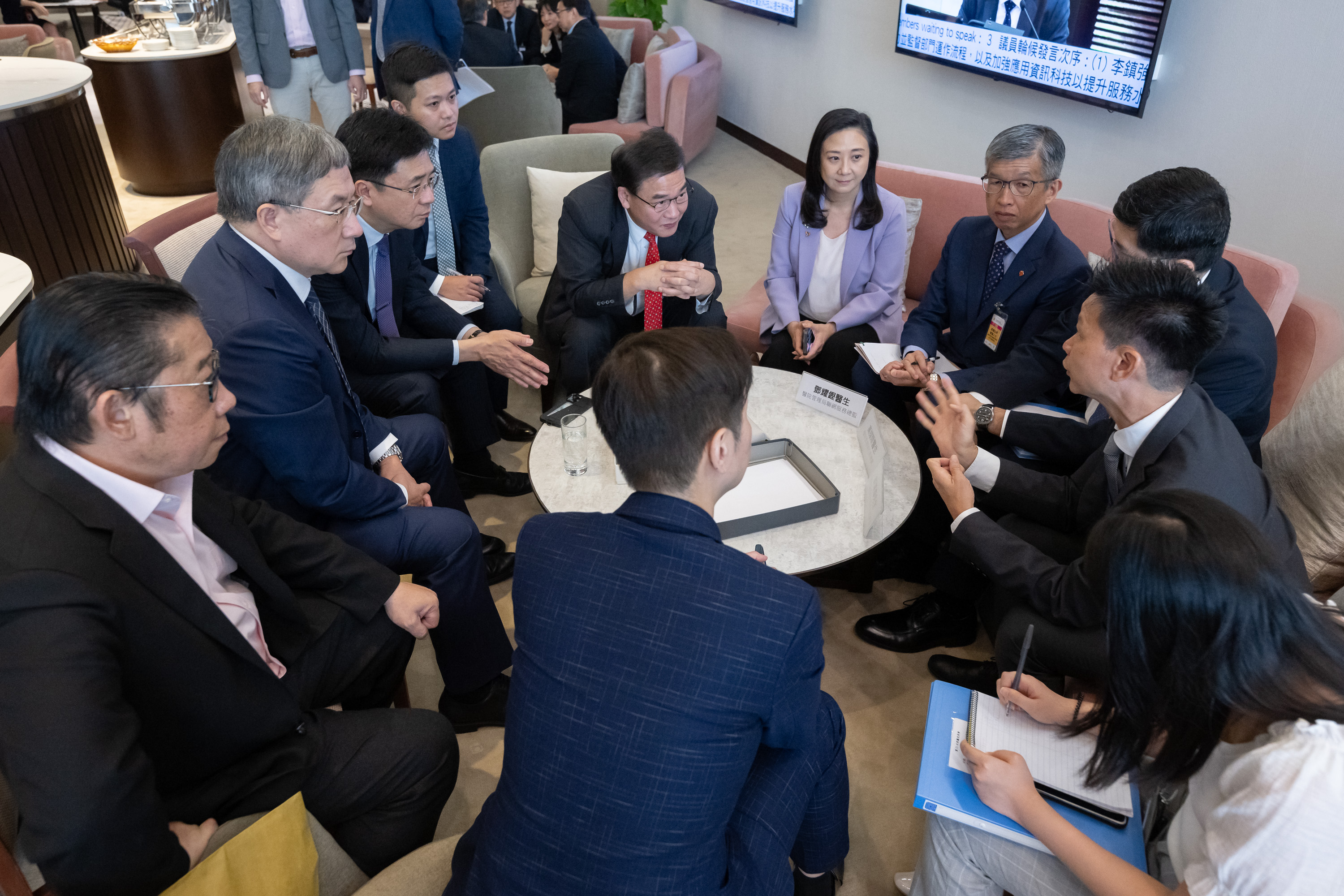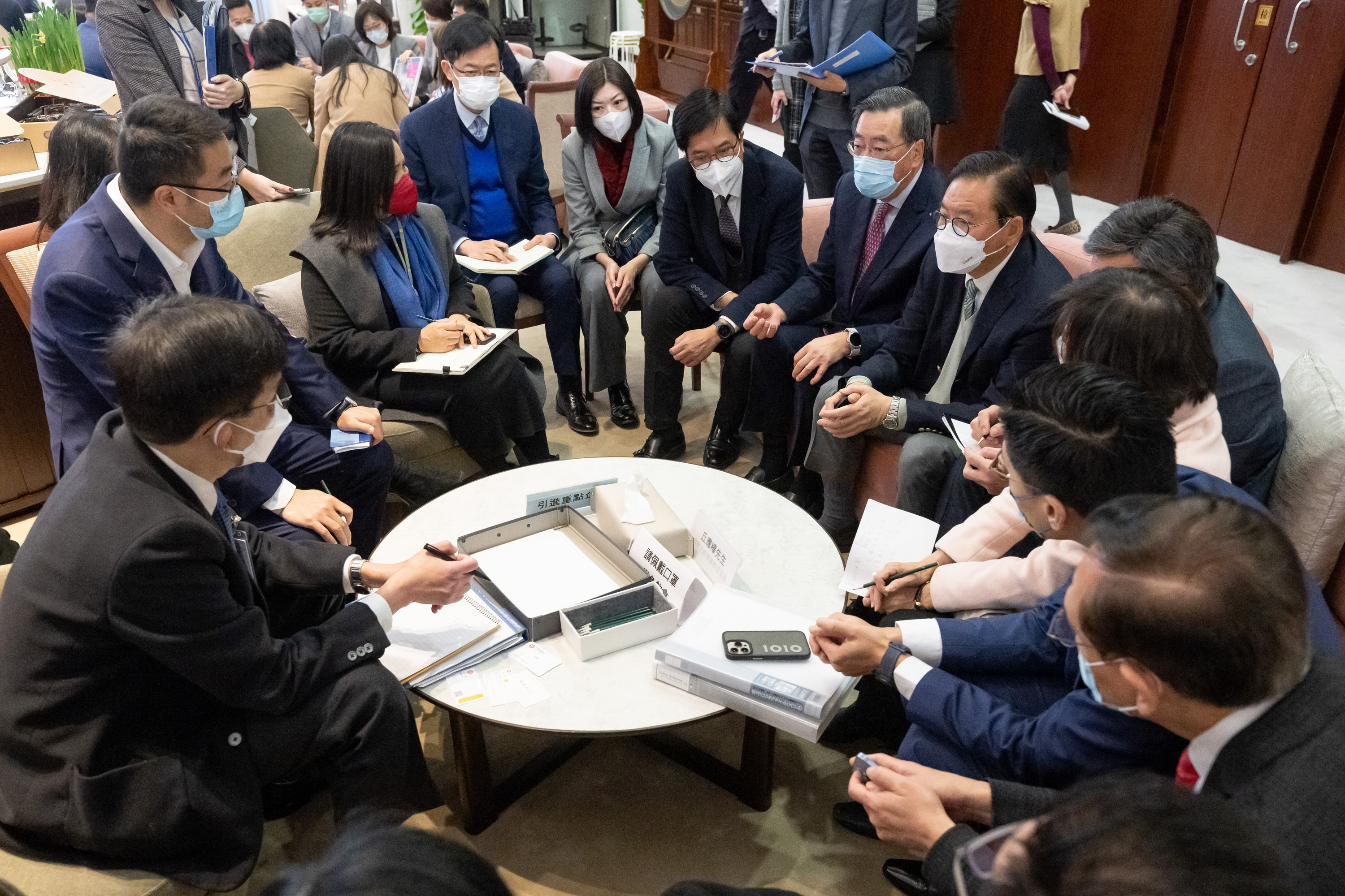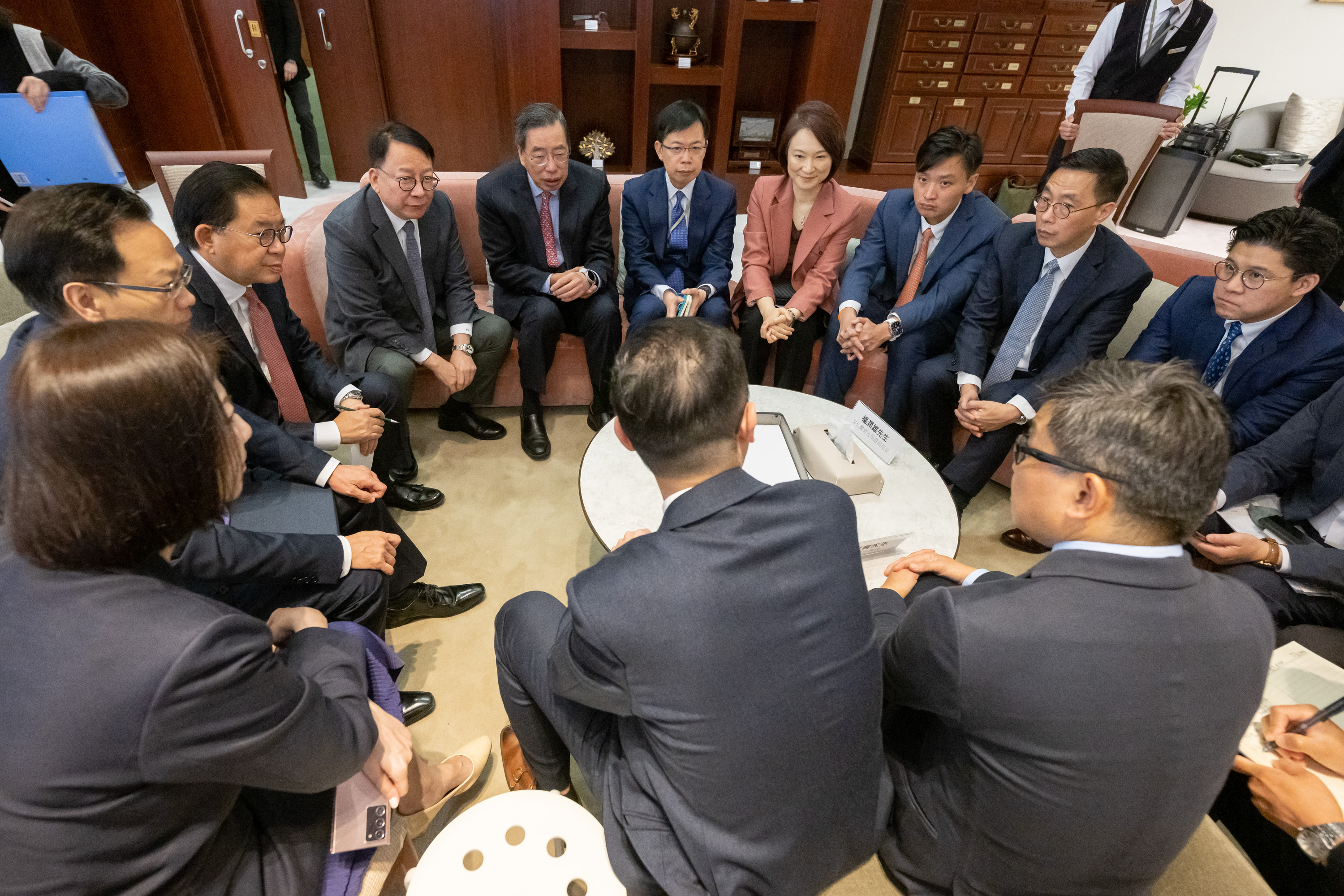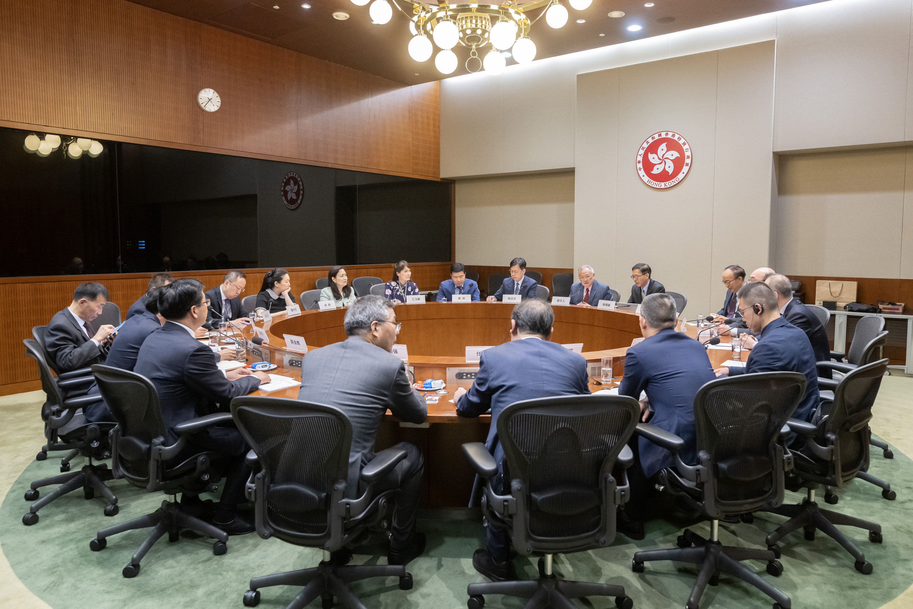 The Chief Executive, Mr John LEE Ka-chiu, the Director of the Liaison Office of the Central People’s Government in the Hong Kong Special Administrative Region, Mr ZHENG Yanxiong, and the Commissioner of the Ministry of Foreign Affairs in the Hong Kong Special Administrative Region, Mr LIU Guangyuan, also attended the meeting to share and exchange views with Members.