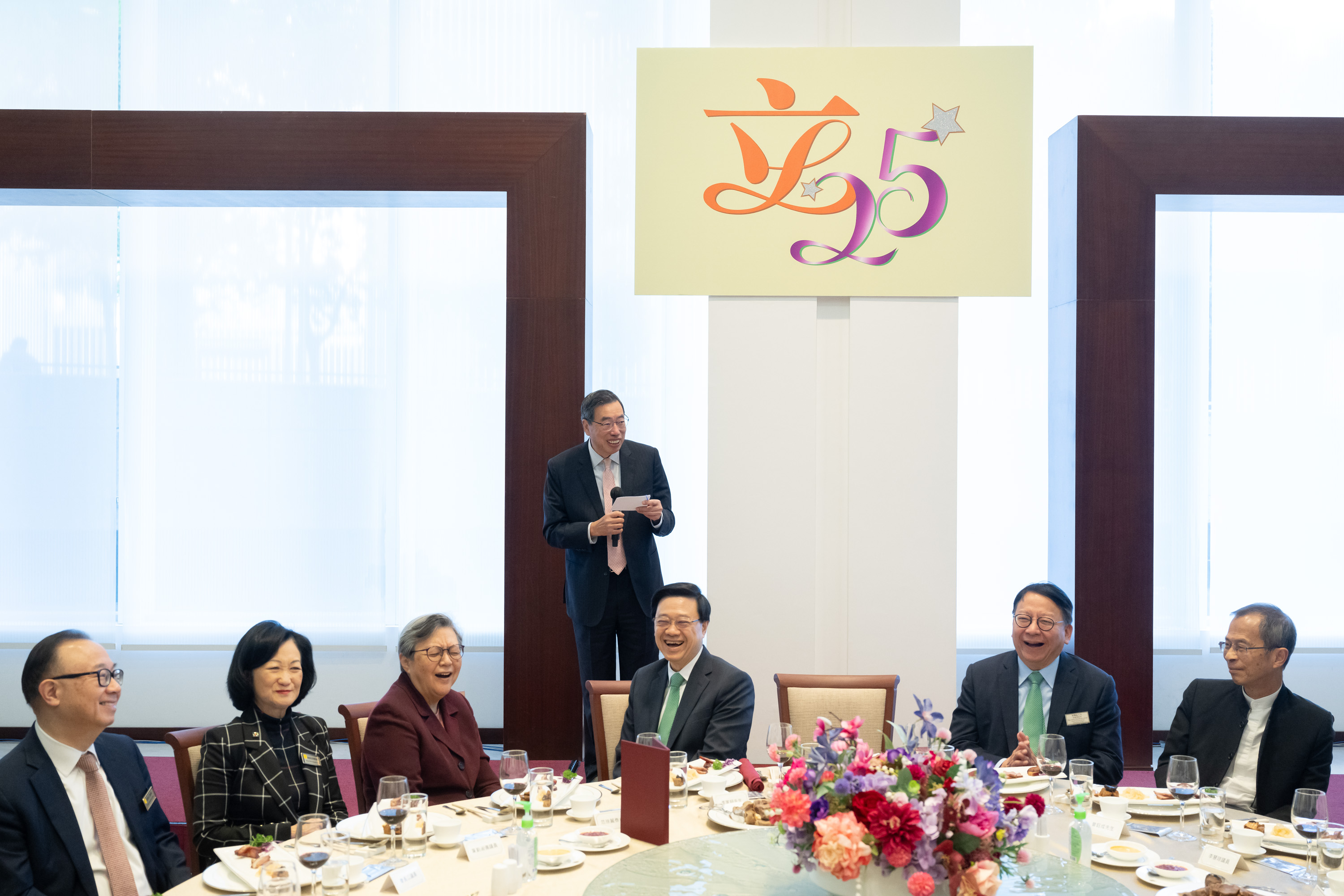 To mark the 25th anniversary of the establishment of LegCo, former LegCo Presidents Mrs Rita FAN HSU Lai-tai and Mr Jasper TSANG Yok-sing were invited to attend a networking luncheon held in November 2023. A commemorative video, specially produced by the Secretariat, was premiered on the day of the luncheon for the guests to take a stroll down memory lane and envision the future together.