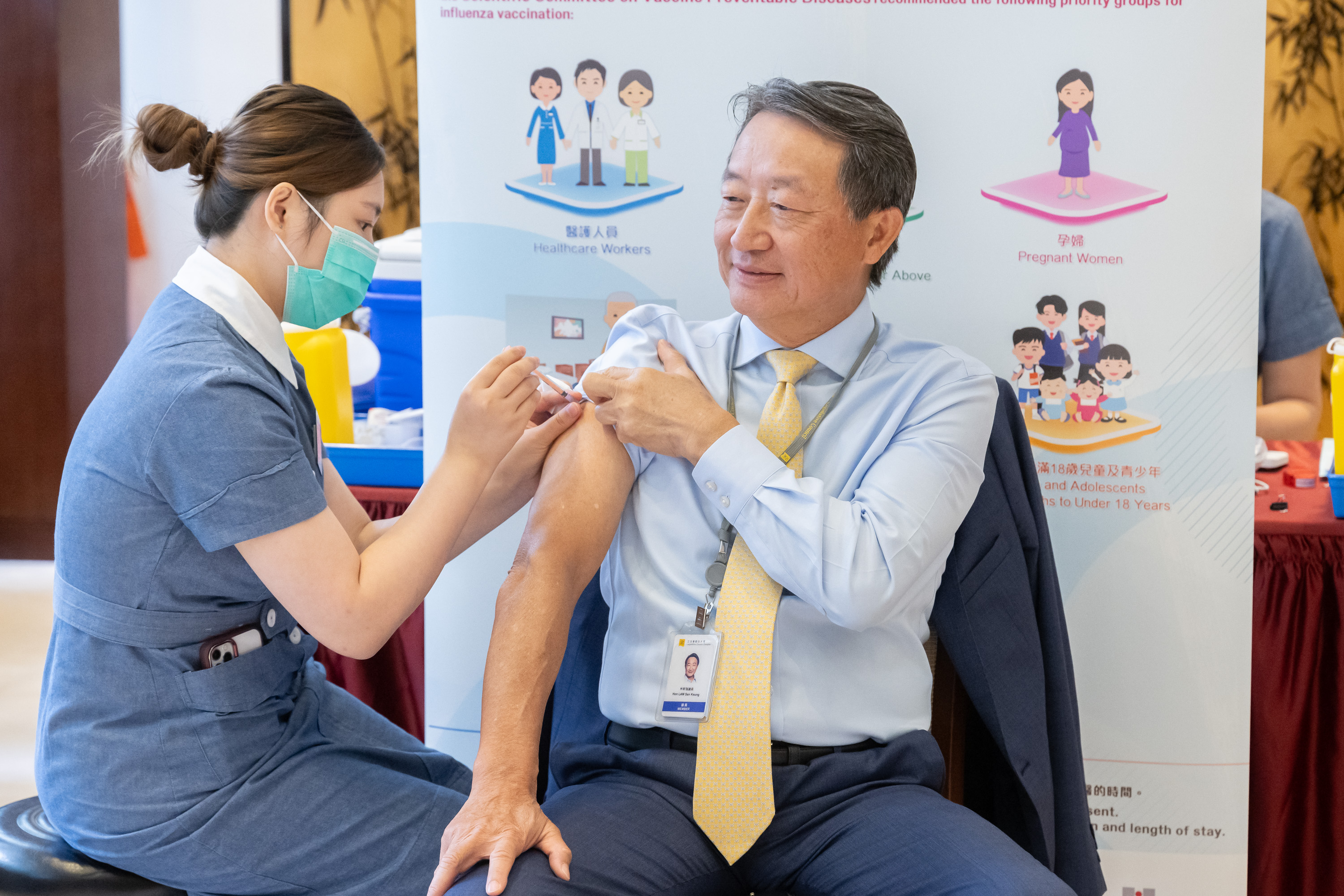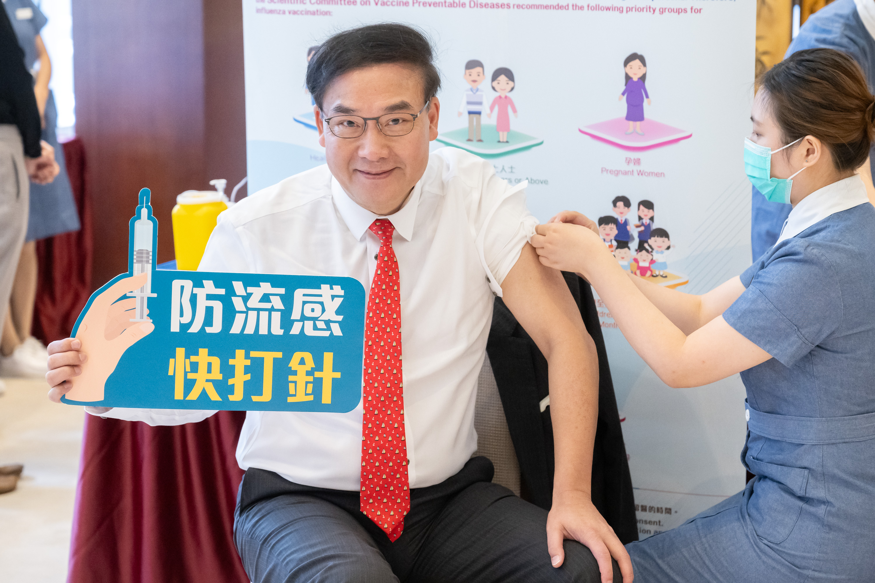 In response to the Government’s call for vaccination, the Department of Health sent an outreach team to the LegCo Complex on 23 October 2024 to provide Members with influenza vaccinations and COVID-19 booster shots. Around 50 Members participated in the event and the Secretary for Health led his team to the site to show their support. Through their actions, members of the public were urged to get vaccinated and collectively strengthen the community’s immune barrier.