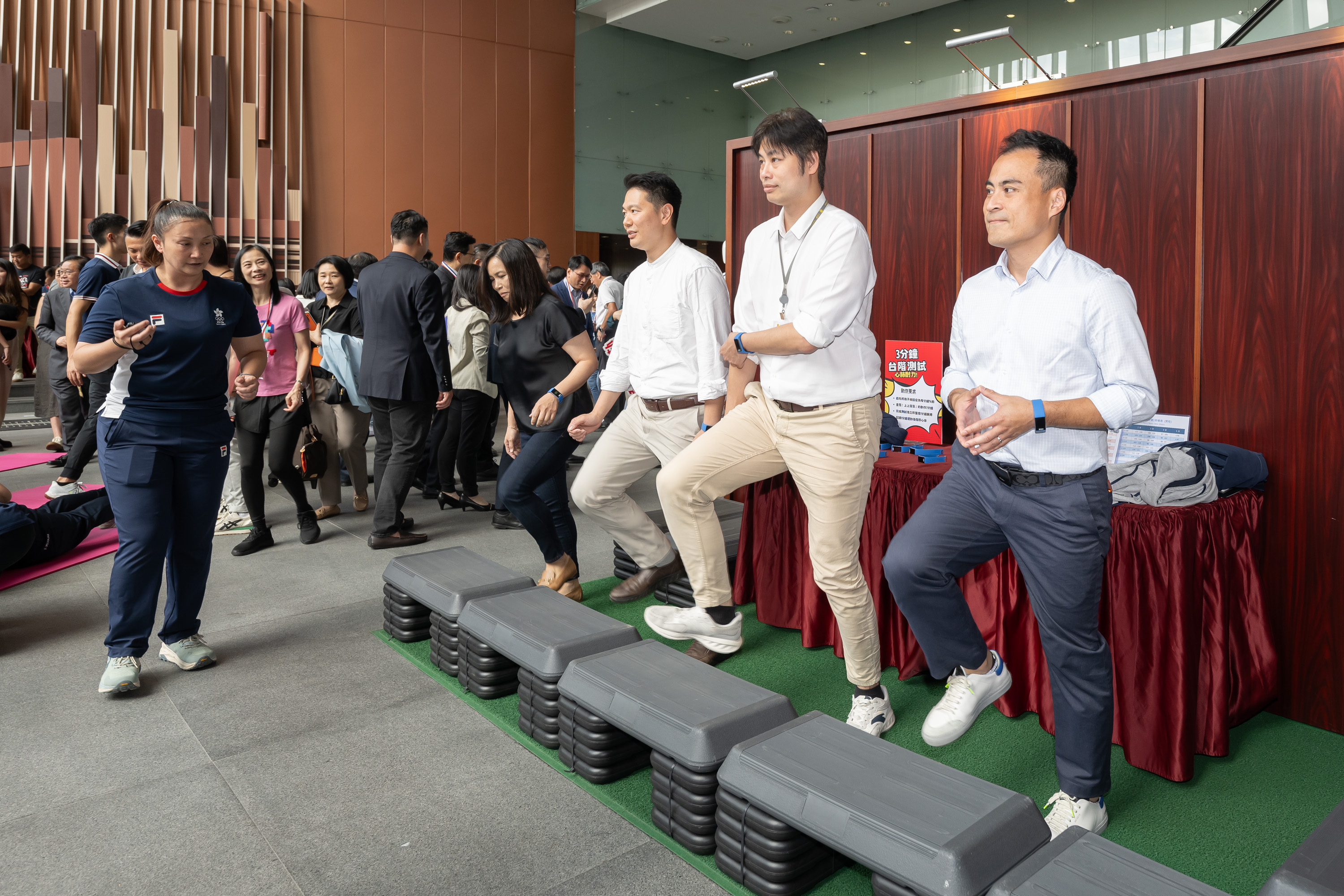 On 12 July 2024, LegCo and the Sports Federation & Olympic Committee of Hong Kong, China, co-organized the event “Supporting the Hong Kong, China Delegation to the Paris Olympic Games (‘POG’)”. The Secretary for Culture, Sports and Tourism, together with eight current and retired athletes, called on the entire city to rally behind the Delegation. The event showcased the Olympic medal ceremony attire and competition uniforms of the Delegation to POG. Members also participated in a physical fitness challenge, experiencing the charm of sport first-hand. During POG, live broadcasts of the competitions were shown in the Main Lobby of the LegCo Complex, bringing the public together to cheer on the athletes.