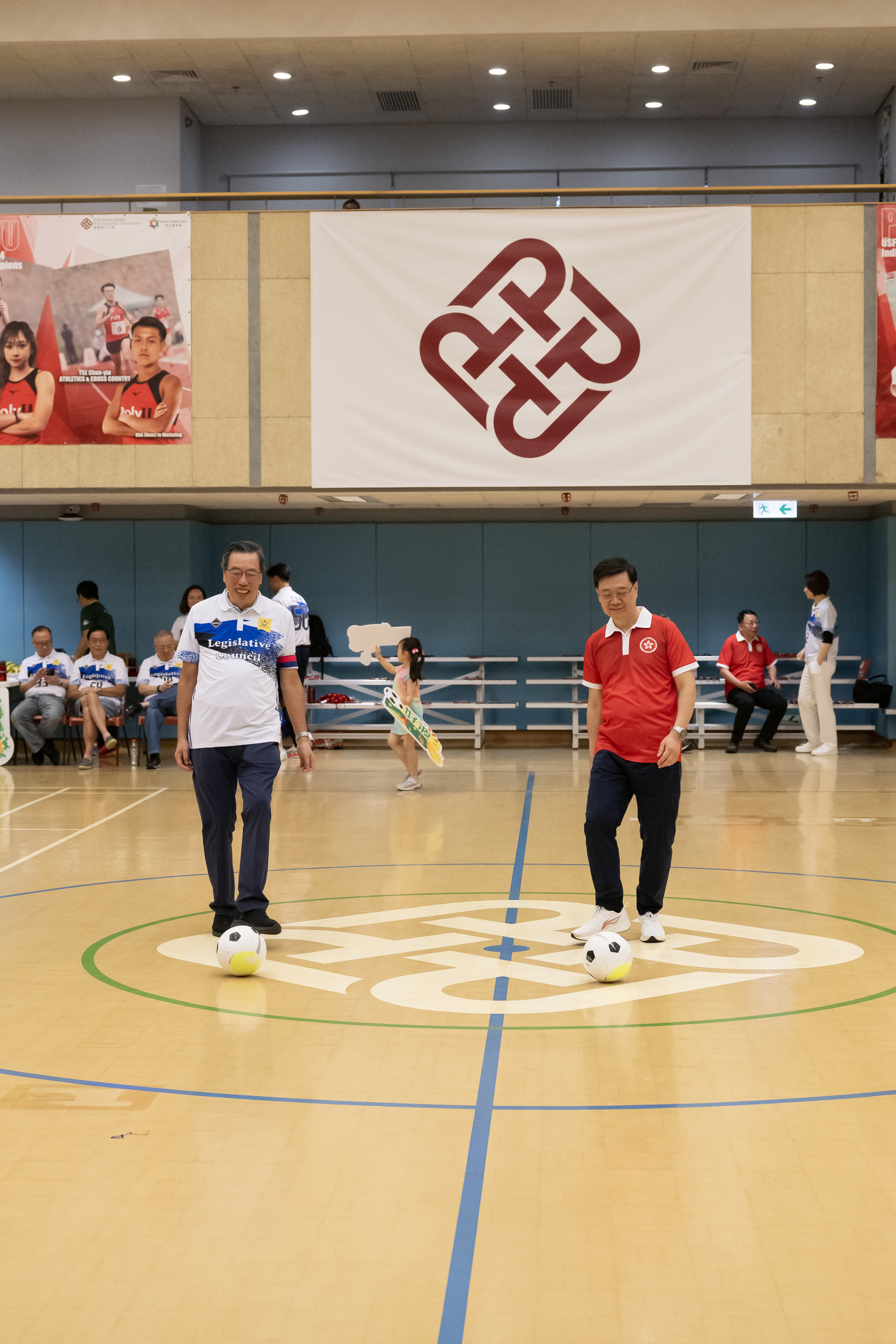 During this session, the LegCo Football Team played three friendly matches against the Chinese Banking Association of Hong Kong, the Government Football Team, and the Hong Kong Association of Freight Forwarding and Logistics Limited. The five-a-side match against the Government Football Team was a particular highlight, with the Chief Executive attending the event to show his support and nearly 50 government officials participating. At the event, the Chief Executive joined the LegCo President to officiate at the kick-off ceremony, and cheered for the Paris 2024 Olympic Games athletes alongside Members and government officials. The aim of the match was to boost Olympic enthusiasm, encourage community-wide participation in sports, and showcase a united spirit across all sectors of society.