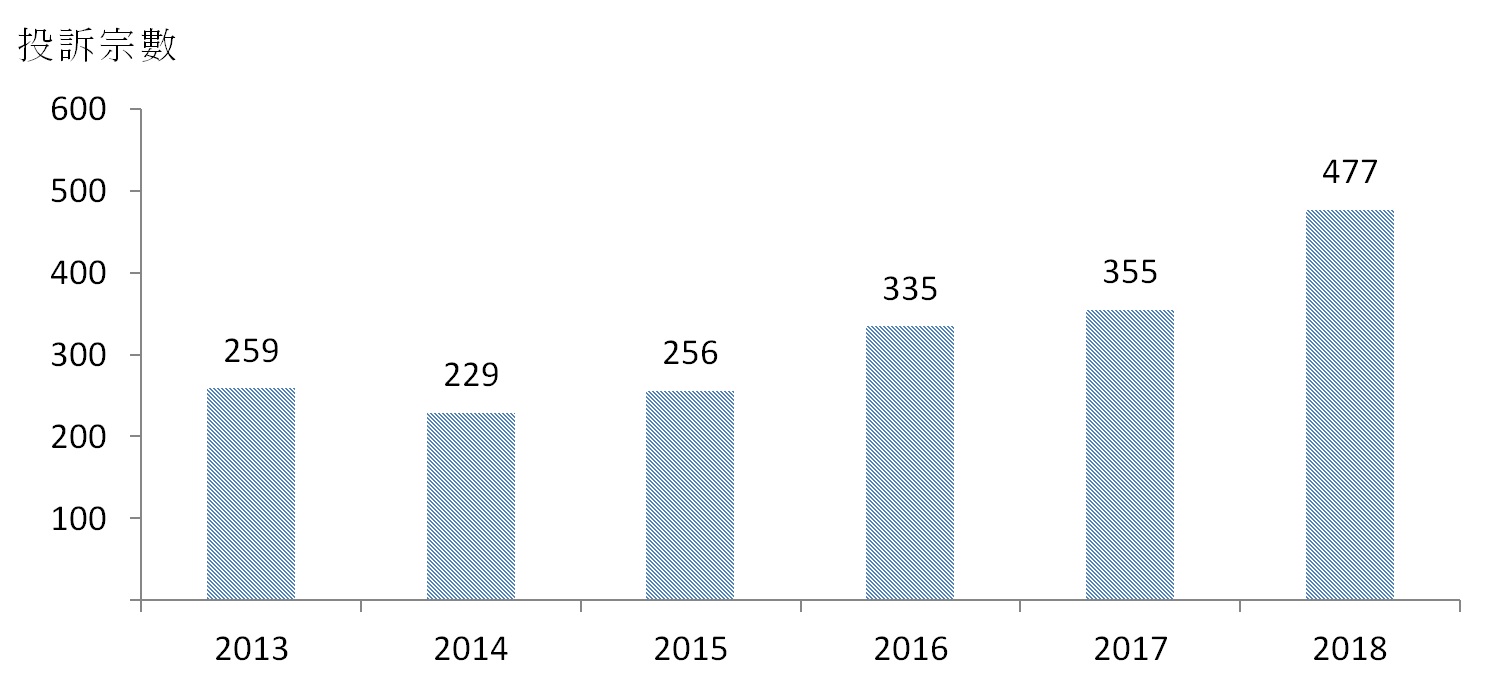 圖1 ── 2013-2018年本港有關戶外燈光的投訴