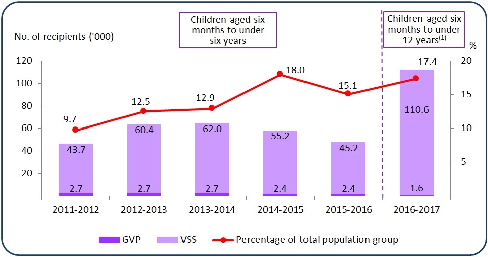 | (c) | children aged six months to under 12 years from families receiving CSSA or holding valid Certificate; and