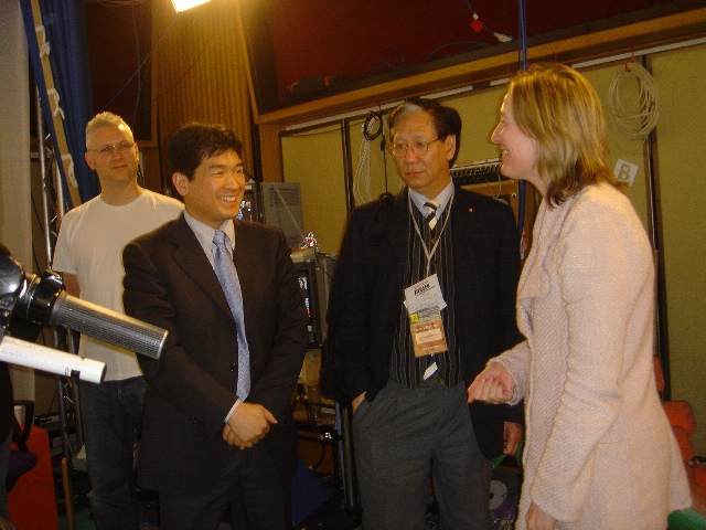 立法会资讯科技及广播事务委员会于四月十八日至二十一日期间,继续伦敦的考察行程,与多位从事公共广播服务的管理人员,交換意见。考察团出访伦敦的首天(四月十八日),参观了英国广播公司。(左面第二位起):单仲偕议员(主席)及郑经翰议员(副主席)与英国广播公司儿童台总监制谈话。