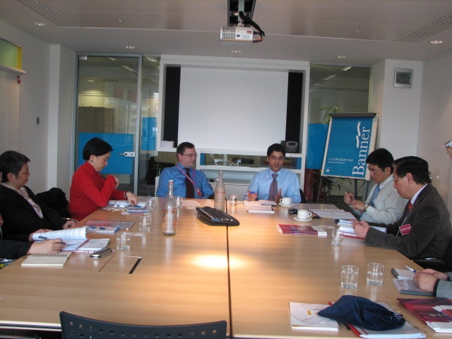 考察团与英国通讯办公厅高级经理(策略发展)Khalid Hayat先生(右三),以及公共广播服务內容部主管Steve Perkins先生(左三) 会晤。