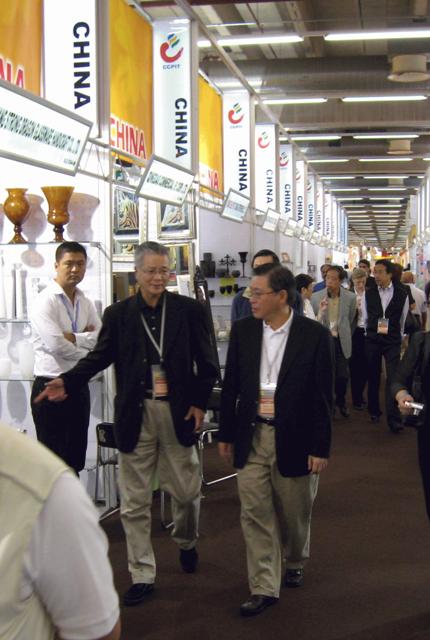 圖示訪問團參觀內地參展商在法蘭克福Tendence Lifestyle展覽會設置的展覽攤位。
