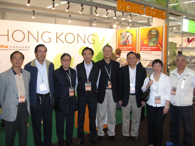 访问团参观法兰克福Tendence Lifestyle展览会时,在香港贸易发展局的资讯站前合照。