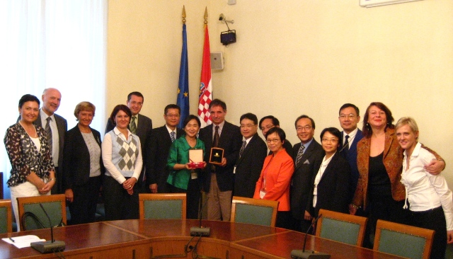 向跨議會合作委員會主席Milorad Pupovac先生(中)及該委員會的委員致送紀念品