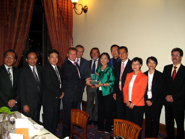 向国民议会匈牙利-中国友好小组主席兼国家发展及经济部国务秘书Laszlo Varju先生(左四)致送纪念品