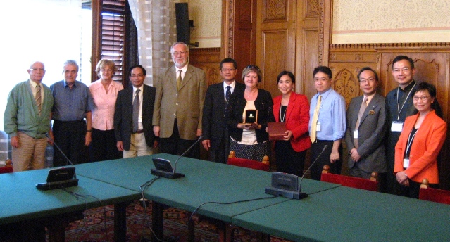 代表团团长刘慧卿议员与宪制、司法及会议常规委员会主席Judit Csiha女士(右六)交換纪念品