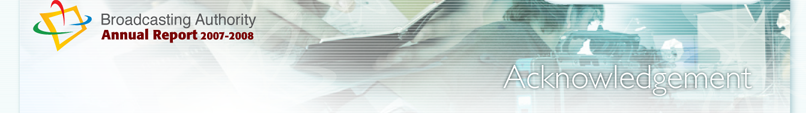 The Broadcasting Authority would like to express its appreciation of the cooperation and support given by the following organisations in discharging its duties: