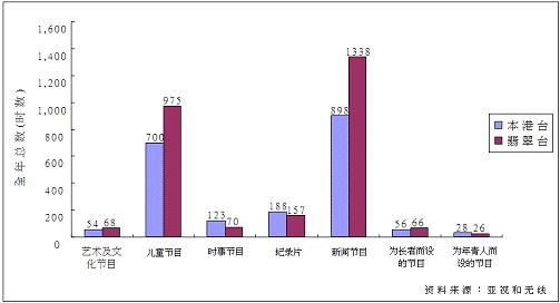 所有在粤语频道播出的新闻报道、时事节目、天气报告、紧急宣布以及在黄金时段(晚上七时至十一时)播出的节目,亚视和无线都需要提供中文字幕。而他们亦需要在英语频道播出的所有新闻报道、时事节目、天气节目及紧急宣布,以及每星期在英语频道播放两小时以青少年为对象兼具教育意义的英文节目提供英文字幕。大体上,亚视和无线均能遵守有关提供字幕的规定。 两个持牌机构亦根据牌照规定,在广播时段内每小时播出一分钟政府宣传短片,并且每星期为广管局播出两分钟宣传片段。年内,两个持牌机构播出这些片段的时数合计为568.5小时。 至于电台服务,声音广播牌照持有人须每星期播出最少6.3小时的指定播放节目26。总括来说,商业电台和新城电台均有遵守牌照条件,包括播出指定播放节目、在广播时段内每小时计播出一分钟政府宣传短片,以及每星期为广管局播放30秒的宣传声带。