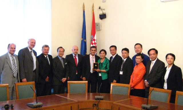 The delegation presented a souvenir to Mr Goran Marić, Chairman of Committee on Finance and Central Budget (sixth from the left) and members of the Committee
