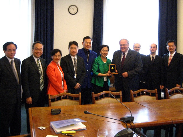 Presentation of souvenir to Mr Dezso Avarkeszi, State Secretary of the Ministry of Justice and Law Enforcement (fourth from the right)
