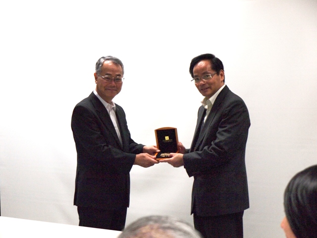 向國立文化財產機構東京文化財研究所所長龜井伸雄先生致送紀念品。