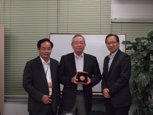 向日本企业支援艺术协议会理事加藤恒夫先生致送纪念品。