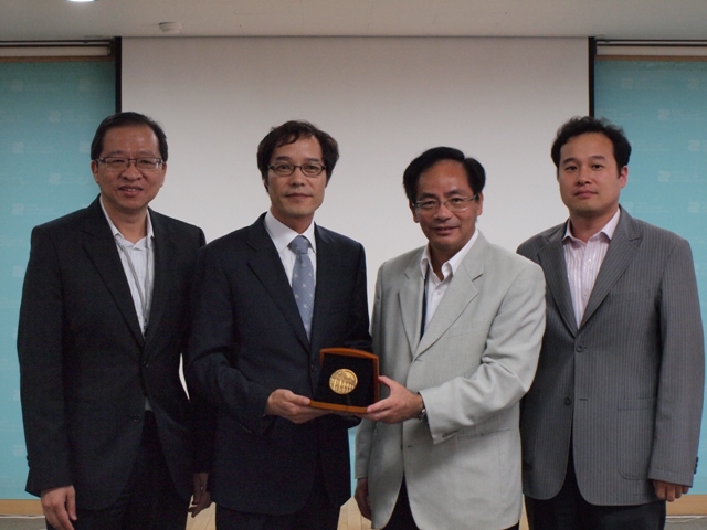 访问团团长叶国谦议员(右二)向韩国文化艺术教育服务机构院长李大荣先生(左二)致送纪念品。