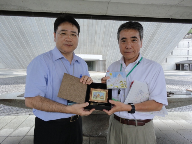 Delegation leader Hon Fred LI Wah-ming presented a souvenir to Mr Ryoji IWASAKI, Manager, Management Office of the Tama Cemetery.