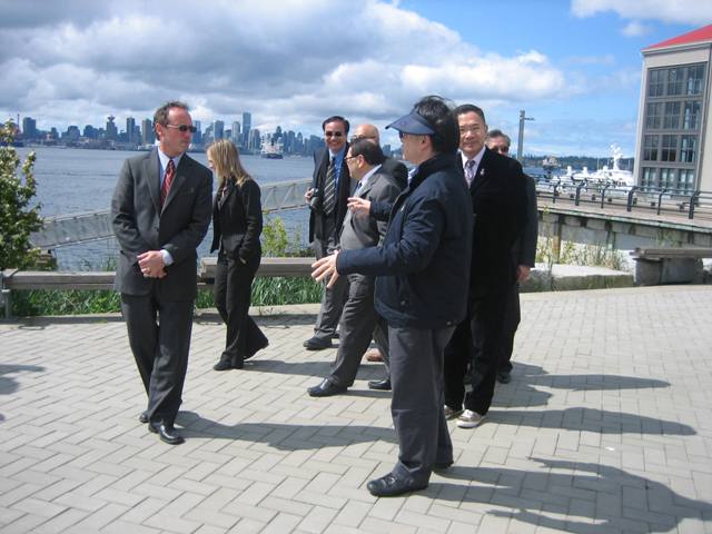 立法會海濱規劃事宜小組委員會訪問團與北溫哥華市海濱項目辦事處的代表參觀溫哥華下蘭斯黛一個重建地點。該處的重建項目的主要特點包括設有海上巴士碼頭、市場、住宅和商業發展項目、附設表演舞台的公眾用地,以及展示該區船廠歷史的文物區。