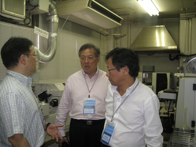 訪問團參觀熊本縣藥劑師會醫藥檢查中心檢測農產品的程序。