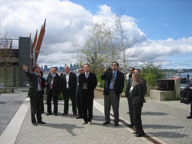 立法会海滨规划事宜小组委员会访问团与北溫哥华市海滨项目办事处的代表参观溫哥华下兰斯黛一个重建地点。该处的重建项目的主要特点包括设有海上巴士码头、市场、住宅和商业发展项目、附设表演舞台的公众用地,以及展示该区船厂历史的文物区。