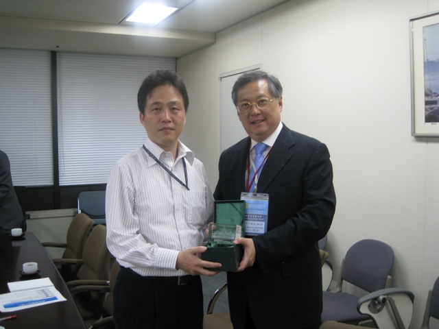 食物安全及环境卫生事务委员会主席张宇人议员向厚生劳动省医药食品局食品安全部基准审查课课长补佐橫田雅彦先生致送纪念品。