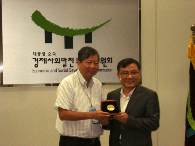 访问团团长致送纪念品予经济社会发展劳使政委员会副主席严玄泽先生