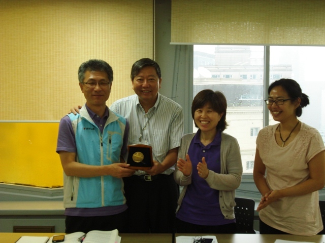 访问团团长李卓人议员致送纪念品予全国民主劳动组合总联盟政策部执行总监任东秀先生