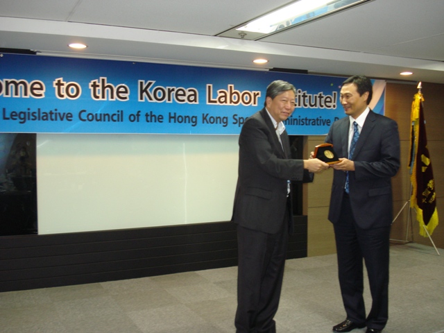 Delegation leader, Hon LEE Cheuk-yan, presented souvenir to Mr KIM Sung-teak, Acting President of Korea Labor Institute