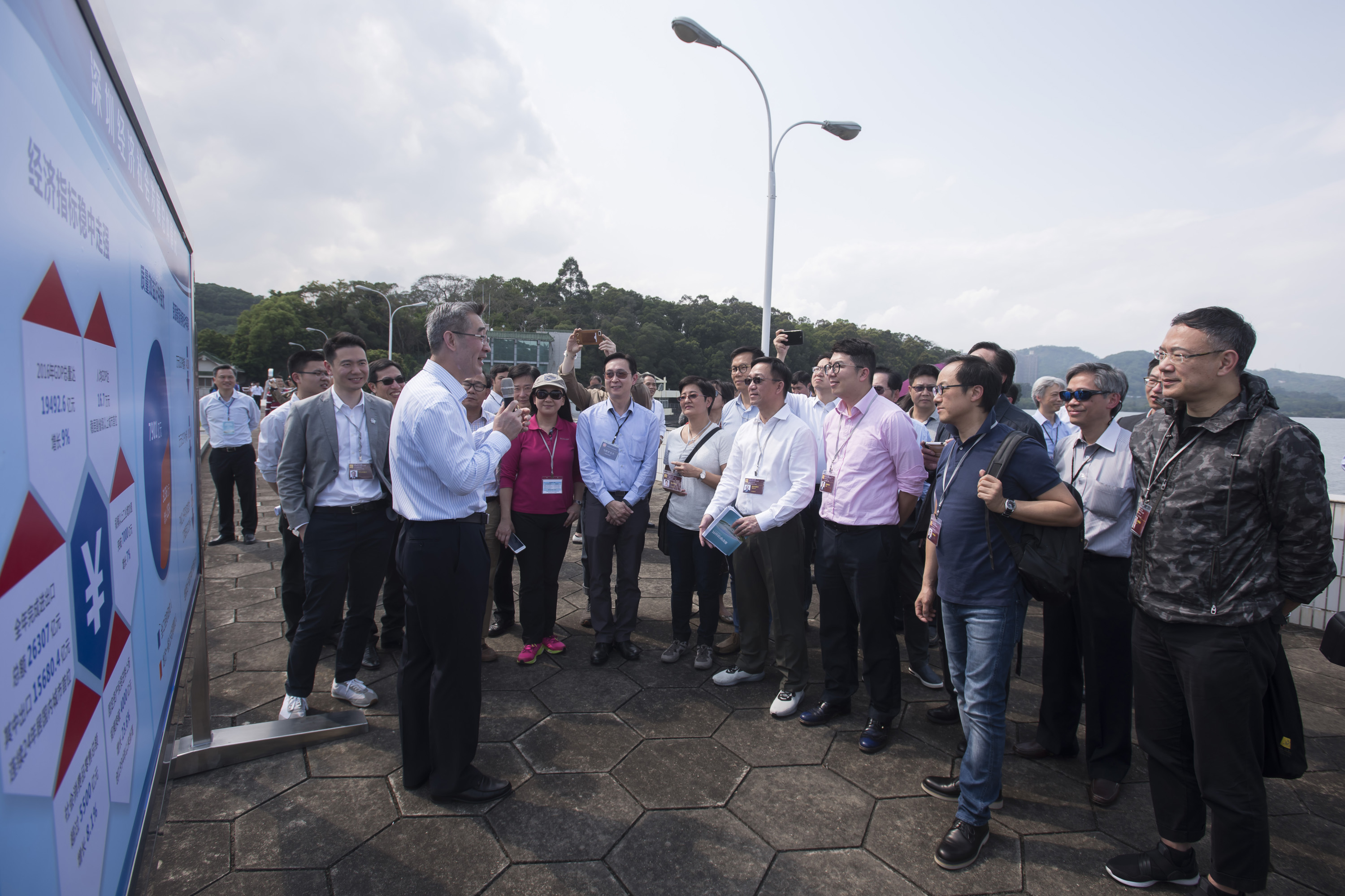 Before departing for Hong Kong, the delegation made its final stop at the dam of the Shenzhen Reservoir to gain a better understanding of the condition of Dongjiang water before being conveyed to the connecting pipe to Hong Kong.