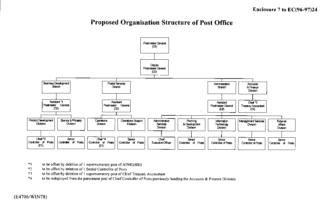 7.我們亦建議開設一個總郵務監督常額職位,專責輔助業務經