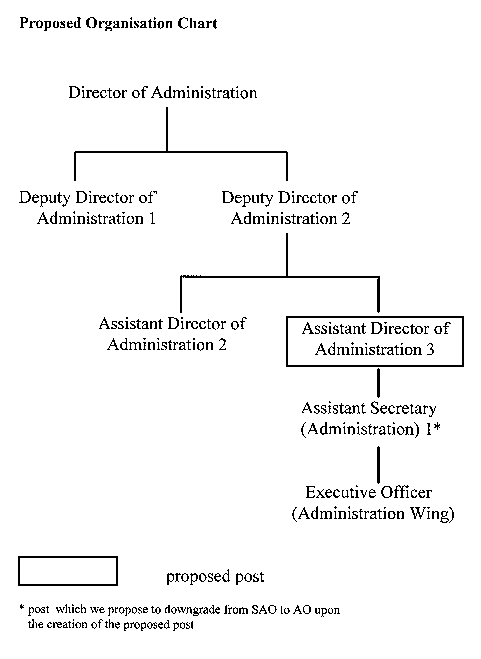 17. The proposed duty list of ADA3 and the proposed organisation chart for the Administration Wing are at Enclosures 1 and 2.