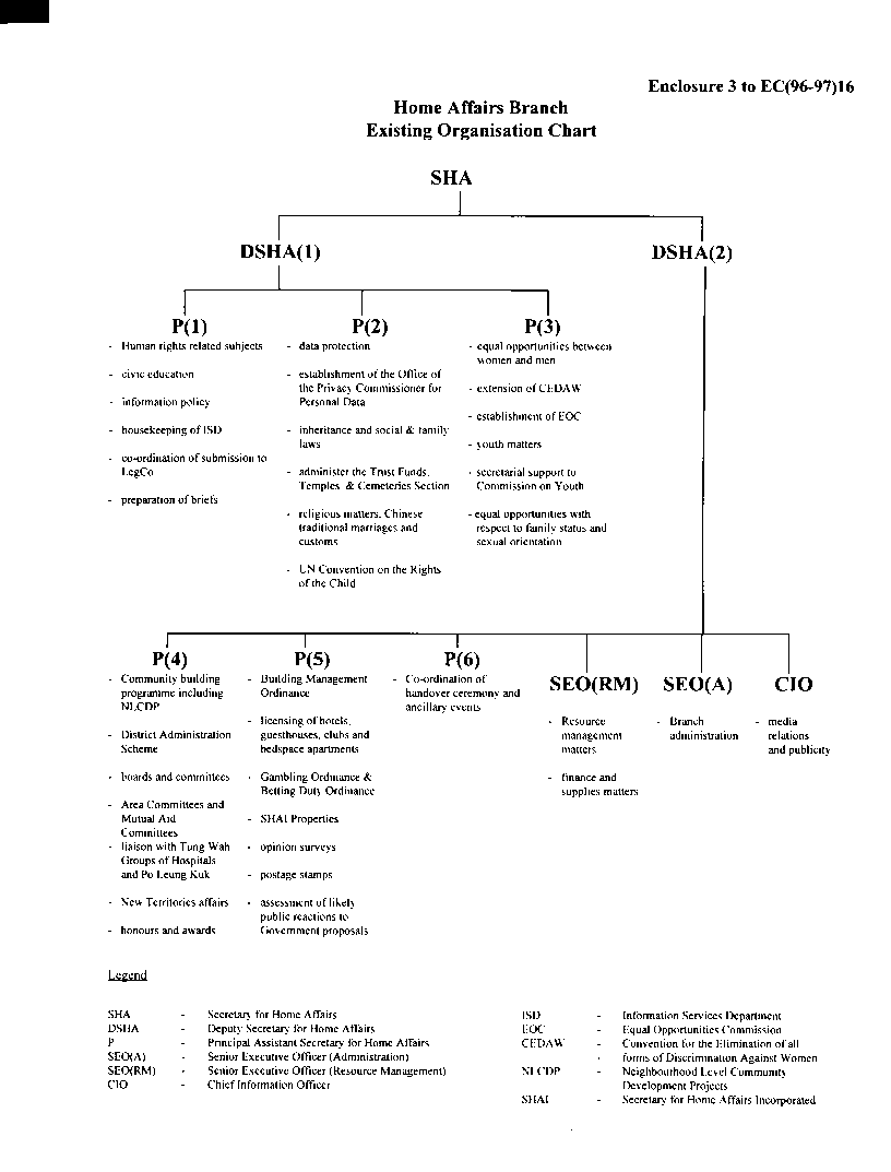 15. We created an additional post of Principal Assistant Secretary for Home Affairs for a period of 18 months with effect from 1 April 1996 to deal with work related to the co-ordination of the handover ceremony and ancillary events.
