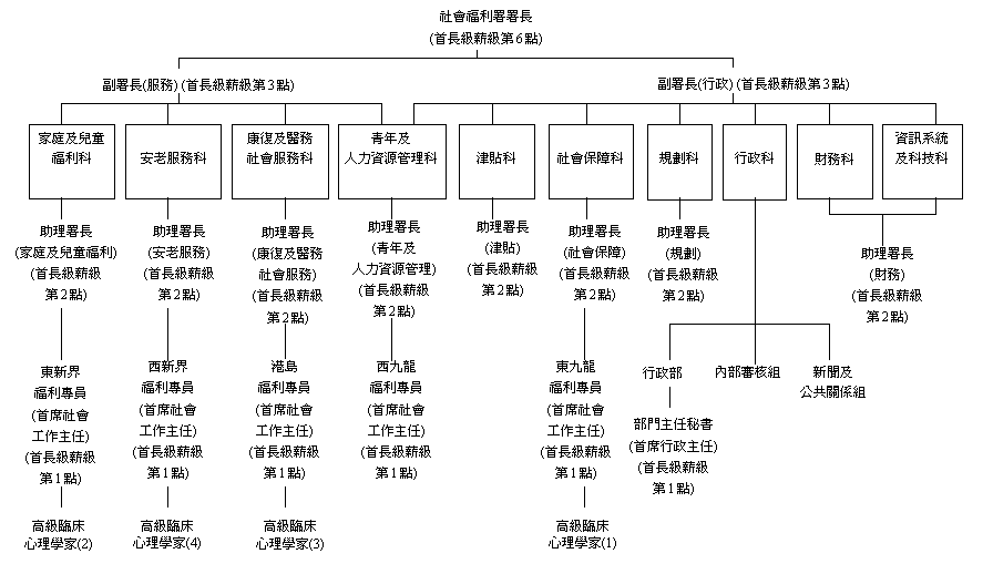 第1點的級別,藉此加強社署首長級架構。出任人員負責主管臨床心理服務。