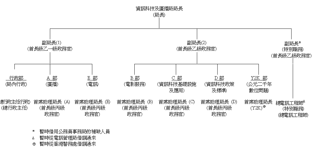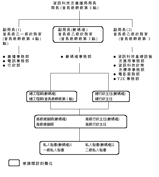 - 一個首長級乙級政務官編外職位,職銜定為資訊科技及廣播局副局長