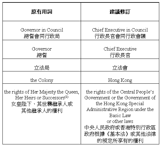 註:(1) 據立法會參考資料摘要第3段所述,此項修訂是依據《全國人民代表大會常務委